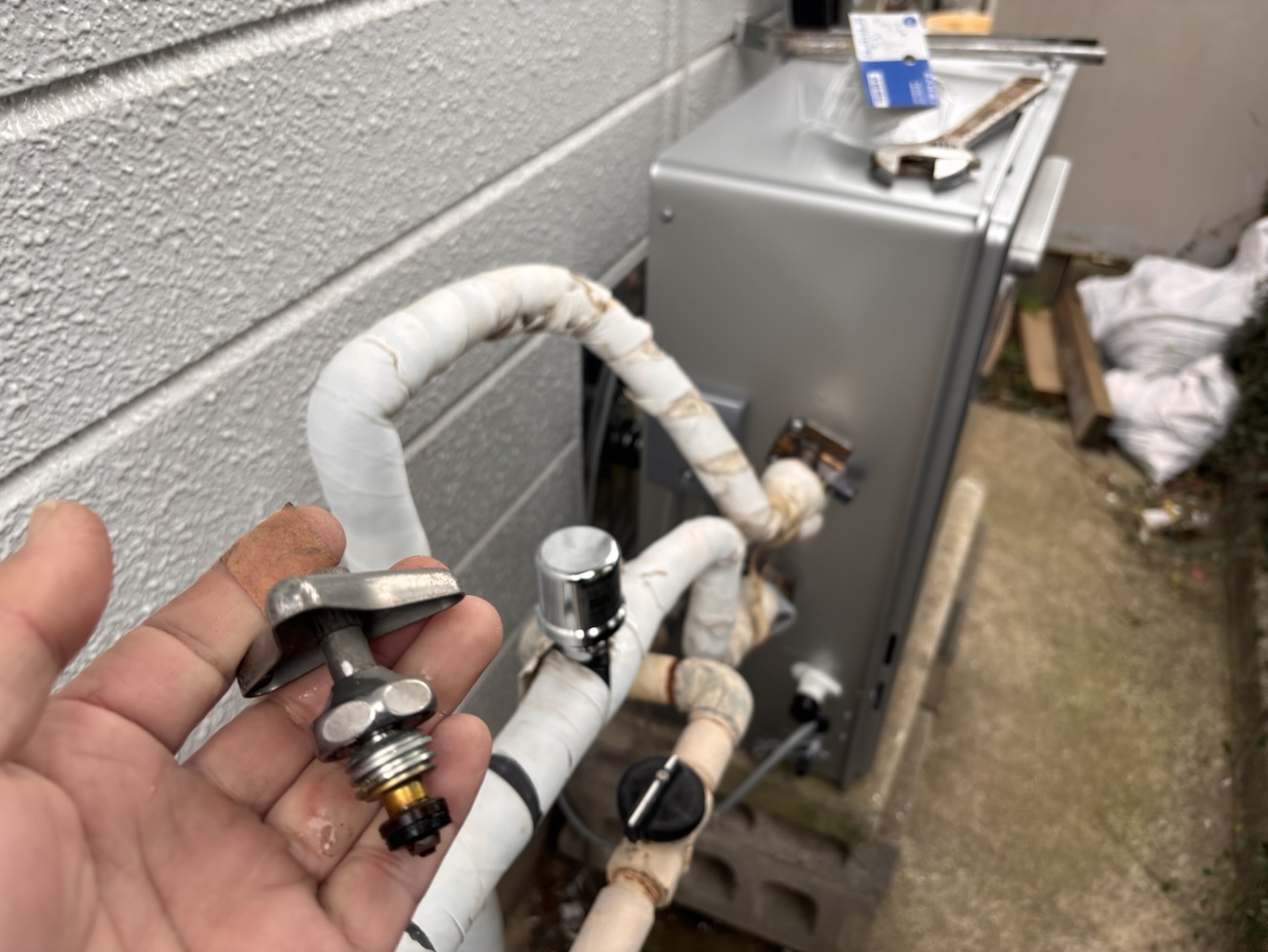 業者さんに見てもらうと、古い配管が急に閉じられる衝撃に耐えきれず、弱ってしまっているとのこと。